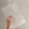 Pasta em polipropileno atóxico com abas internas, elástico reforçado e ponteira plástica; certificada pelo INMETRO para uso diário.