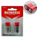 Pacote com quatro pilhas AAA Alfacell para uso comum, oferecendo desempenho estável e praticidade no dia a dia. Ideal para manter pequenos eletrônicos funcionando sem complicação.