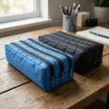 Estojo com três compartimentos que facilita a separação de canetas, lápis e acessórios, combinando praticidade e resistência para o uso diário.